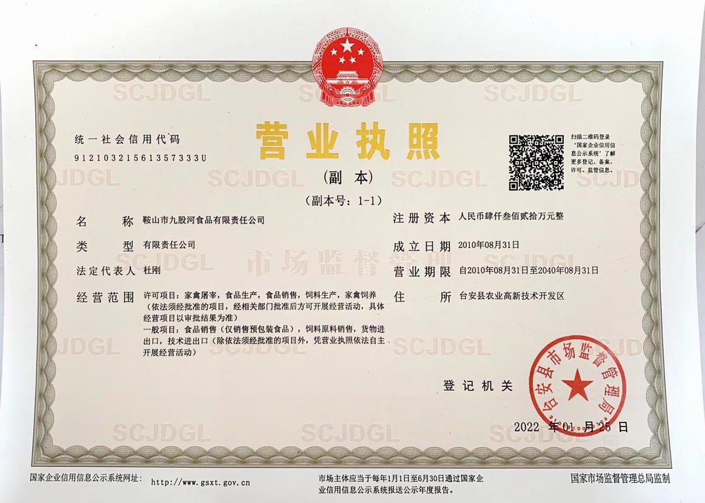 1997年丨九股河誕生于遼寧臺安,成立臺安縣九股河農業發(fā)展有限公司2003年丨九股河走進錦州市,在凌海成立凌海九股河食品有限公司2008年丨成立凌海九股河飼料有限公司2010年丨九股河與禾豐合作后,成立鞍山市九股河食品有限責任公司,從此,禾豐九股河走進了高速發(fā)展之路2011年丨繼續(xù)在遼西闊步,成立葫蘆島九股河食品有限公司同年,臺安縣九股河農業發(fā)展有限公司養殖部成立,按下規(guī)?;\養小區建設的快進鍵2